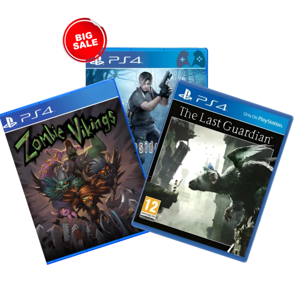 This PS4 game bundle delivers a powerful mix of survival horror, action brawler, and emotional adventure. Experience the intense reimagining of a classic in Resident Evil 4 Remake, enjoy chaotic co-op fun in Zombie Vikings, and embark on a heartfelt journey with a mysterious creature in The Last Guardianāall in one versatile PlayStation 4 collection.